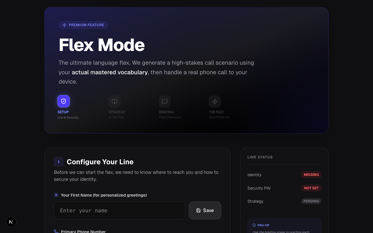 Schedule a real phone call from your AI tutor. It generates a conversation plan from your mastered vocabulary and calls you via SIP. Practice on the go — no app, no screen, just a real conversation.
